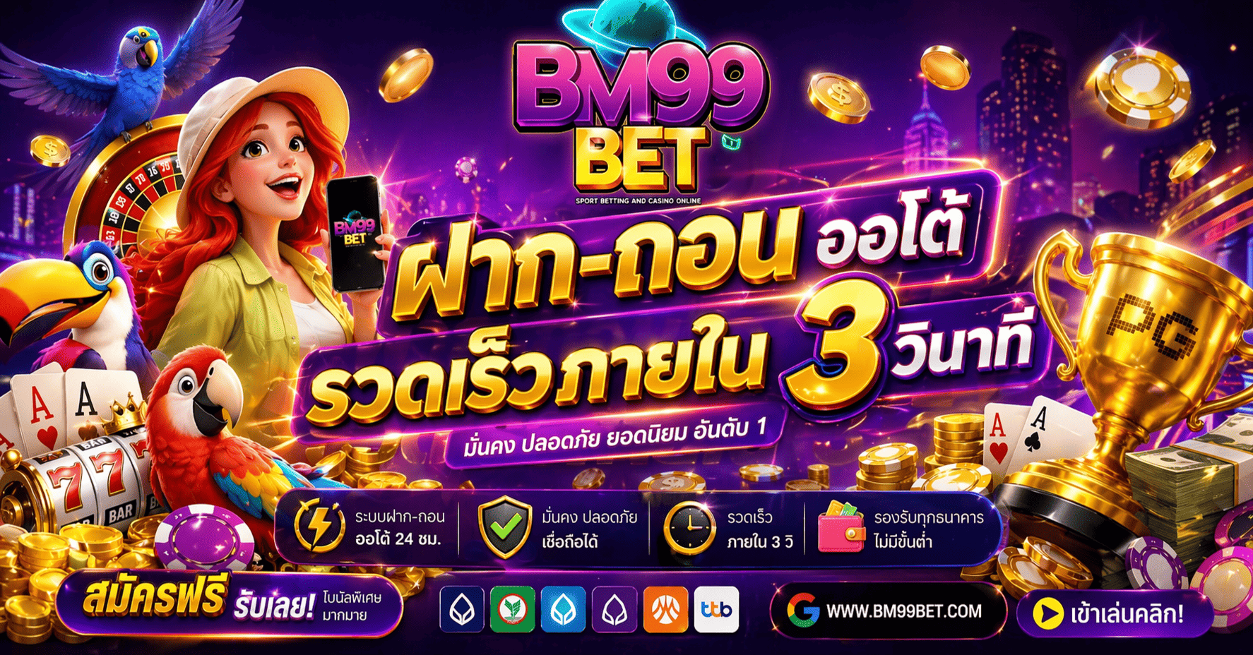 ที่ BM99BET เราให้บริการฝาก-ถอน แบบไม่มีขั้นต่ำ 1 บาทก็สามารถฝากเล่นได้ ทำรายการผ่านระบบออโต้ 100%