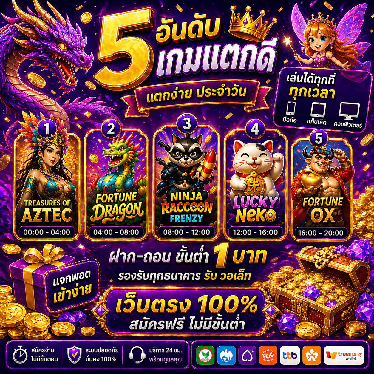 รองรับทุกธนาคารชั้นนำในประเทศไทย และยังรองรับระบบ TrueMoney Wallet เพื่อความสะดวกสบายสูงสุดของลูกค้า