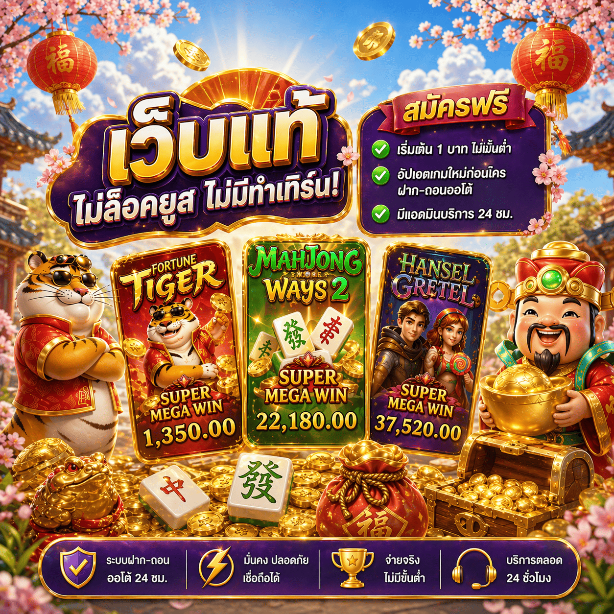ไม่ต้องโยกเงินครับ เราใช้ระบบ One Wallet กระเป๋าเดียวครอบคลุมทุกค่ายเกม ไม่ว่าจะสล็อต คาสิโน หรือกีฬา เข้าเล่นได้ทันที