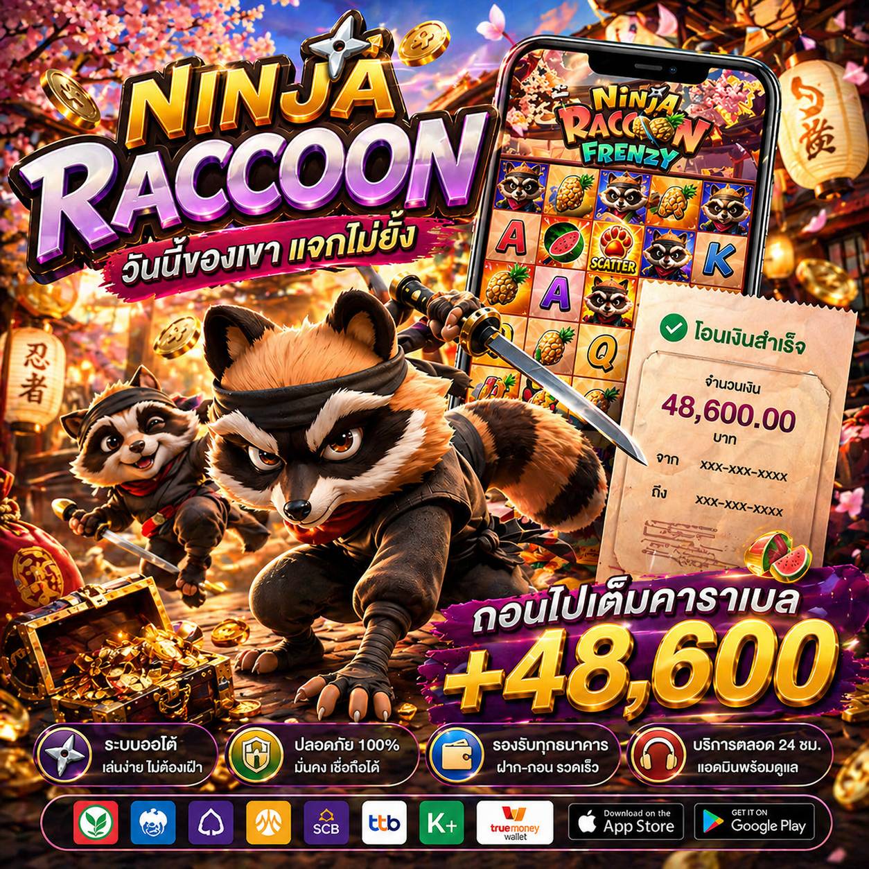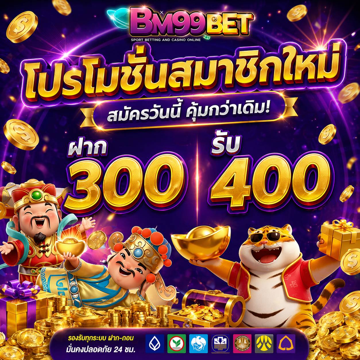 รองรับทุกธนาคารชั้นนำในประเทศไทย และยังรองรับระบบ TrueMoney Wallet เพื่อความสะดวกสบายสูงสุดของลูกค้า