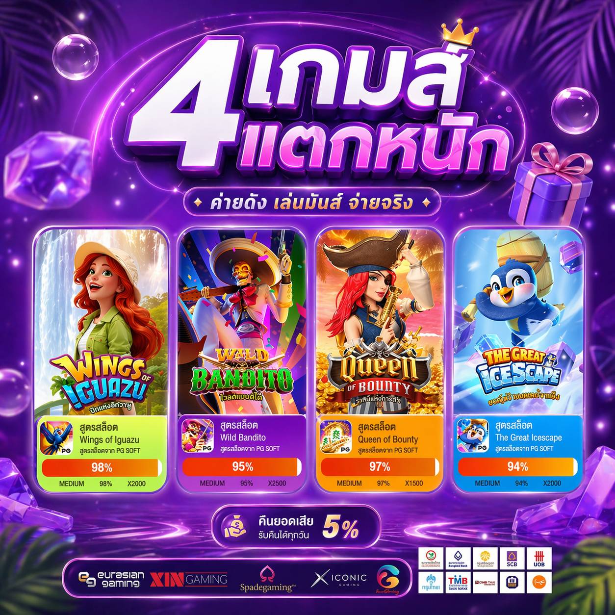 ไม่ต้องโยกเงินครับ เราใช้ระบบ One Wallet กระเป๋าเดียวครอบคลุมทุกค่ายเกม ไม่ว่าจะสล็อต คาสิโน หรือกีฬา เข้าเล่นได้ทันที